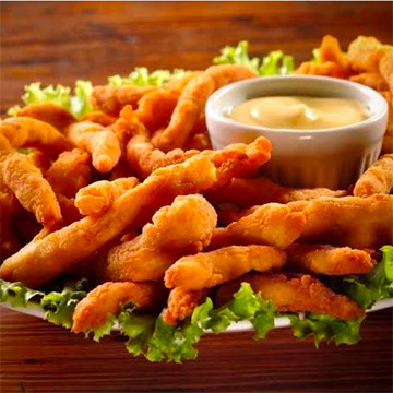 Isca de Frango com Batata Preço: R$ 59,90 Tamanho: 1 porção que acompanha: iscas de frango com batata